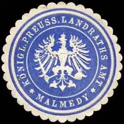 Der Kreis Malmedy wurde 1816 im preußischen Regierungsbezirk Aachen gebildet und war in die fünf Bürgermeistereien Bellevaux, Büllingen, Bütgenbach, Malmedy und Weismes gegliedert. Das Gebiet gehörte ursprünglich zum Herzogtum Limburg und wurde infolge des Wiener Kongresses 1815 preußisch. Am 1. Februar 1821 wurde der ebenfalls 1816 gegründete Nachbarkreis Sankt Vith in den Kreis Malmedy eingegliedert, wodurch zehn weitere Bürgermeistereien zum Kreis Malmedy kamen. Mit der Einführung der Gemeindeordnung für die Rheinprovinz von 1845 wurden die meisten Bürgermeistereien des Kreises in Gemeinden untergliedert. Malmedy und Sankt Vith erhielten 1856 die Rheinische Städteordnung. Außerdem wurde im Verlauf des 19. Jahrhunderts die Bürgermeisterei Thommen aufgehoben und die Bürgermeisterei Bevercé neu eingerichtet. Im Kreis Malmedy bestanden zuletzt auf einer Fläche von 813 km² zwei Städte und 43 weitere Gemeinden:[1] Heute noch erinnern die alten Belgisch-Preußischen Grenzsteine an den ehemaligen Verlauf der Grenze.