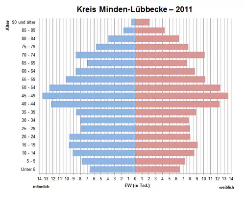 - ↑ Datenbank Zensus 2011, Kreis Minden-Lübbecke, Alter + Geschlecht ( vom 22. September 2021 im Internet Archive)