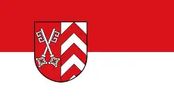- „Der Kreis führt ein rot und weiß längsgestreiftes (gespaltenes) Banner mit dem Wappenschild des Kreises in der Mitte der oberen Hälfte.“[35]