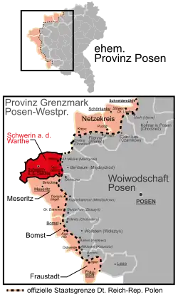 Nach der Auflösung der Provinz Posen, die zum größten Teil an Polen fiel, wurde am 20. November 1919 der Kreis Schwerin an der Warthe der neuen Regierungsstelle in Schneidemühl im Verwaltungsbezirk Grenzmark Westpreußen-Posen unterstellt.
