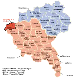 Am 1. Oktober 1887 entstand der neue Kreis Schwerin an der Warthe im Regierungsbezirk Posen der preußischen Provinz Posen aus Teilen des Kreises Birnbaum, nämlich: