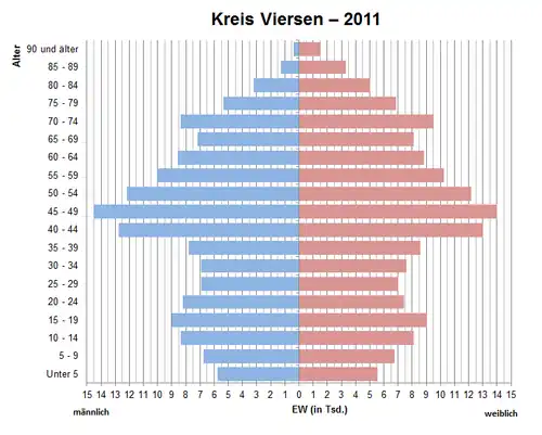 - ↑ Datenbank Zensus 2011, Kreis Viersen, Alter + Geschlecht ( vom 22. September 2021 im Internet Archive)