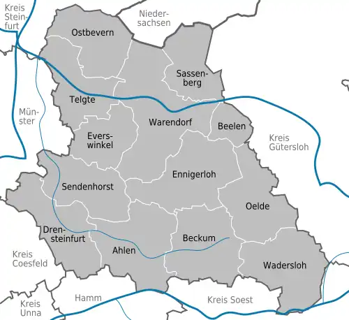 | Ostbevern | 11.469 | 89.65 km² | 128 | kreisangehörige Gemeinde | 05 570 032 |