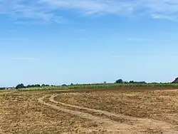 Im Umfeld der Anlage erstreckt sich eine ausgedehnte Nekropole der späten Bronze- und frühen Eisenzeit. Unmittelbar vor dem äußeren Graben und diesen teilweise schneidend wurde bei der Ausgrabung ein kleiner ovaler Graben mit einem Durchmesser von 13 m freigelegt, der eine schmale Öffnung aufwies. In seinem Inneren wurde ein Raum festgestellt, der auf drei Seiten von ovalen Gruben begrenzt wurde.