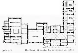 Das Kreishaus Düsseldorf, Kasernenstraße 69 in Düsseldorf, war der Verwaltungssitz des Landkreises Düsseldorf und dessen Rechtsnachfolger, dem Kreis Düsseldorf-Mettmann. Das Gebäude wurde 1901 bis 1903 auf Grundlage des in einem vorausgegangenen Architektenwettbewerb mit dem zweiten Preis ausgezeichneten Entwurfs des Münsteraner Architekten G. Wölfer nach einer Planung des Kölner Architekten Friedrich August Küster im Stil des Historismus und nach Vorbildern der deutschen Renaissance erbaut. Ein Entwurf Küsters war während des Wettbewerbs ebenfalls mit einem zweiten Preis prämiert worden. Die Wandflächen des vom Düsseldorfer Architekten Josef Kleesattel neu hergerichteten Sitzungssaals zierten Fresken des Malers Hans Kohlschein. Die vom Landrat Dr. von Chamier beauftragten Ausmalungen sollten Leid, Trauer und den Weg aus den Trümmern des Ersten Weltkriegs thematisieren.[1] Während des Zweiten Weltkriegs wurde das Kreishaus im Jahr 1943 beschädigt und diente nach dem Wiederaufbau 1958 bis zur Auflösung des Kreises zum 1. Januar 1975 als dessen Sitz.