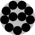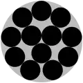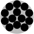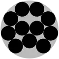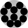 - ↑ a b H. Melissen, Densest packing of eleven congruent circles in a circle, Geom. Dedicata 50 (1994), 15–25.