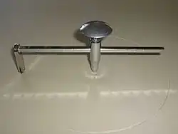 - Kreisschneider mit zwei Messerhaltern, die entlang eines Querbalkens verschoben werden können. Bei manchen Kreisschneidern dieses Typs können die Messerhalter mit einer Spindel zentrisch verstellt werden.[3]
