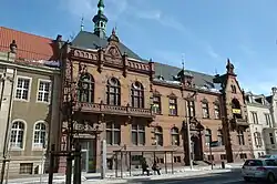 Die Stadt Cottbus wurde im Jahr 1886 als Stadtkreis aus dem Landkreis Cottbus ausgegliedert, blieb aber trotzdem Sitz der Kreisverwaltung. Zu diesem Zeitpunkt war der Kreissitz in der Sandower Straße 54, dieses Gebäude wurde aber aufgrund der gleichzeitigen Nutzung durch Stadtrat und Kreistag zu klein.[1] Nach vier Jahren beschloss der Cottbuser Kreistag den Bau eines neuen Landratsamtes. Im Jahr 1891 wurde unter Leitung des Cottbuser Stadtrates Ewald Schulz und des königlichen Baurates Beutler mit dem Bau begonnen. Bei der Fassadengestaltung entschied man sich für einen aus einem Architektenwettbewerb hervorgegangenen Entwurf des Berliner Architekten Paul Freygang.[2]