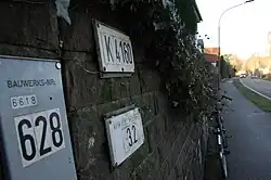 Im Gegensatz zu Gemeindestraßen sind Kreisstraßen grundsätzlich nummeriert sowie mit dem oben dargestellten Stationszeichen versehen. Die jeweilige Bezeichnung wird jedoch nicht auf den Wegweisern aufgeführt. Die Kurzbezeichnung besteht aus dem vorangestellten Großbuchstaben K und einer fortlaufenden Nummer. In Bayern wird stattdessen auch das Kfz-Kennzeichen des Landkreises vor die Nummer gestellt. Die Kreisstraßen sind in den einzelnen Bundesländern wie folgt nummeriert: