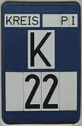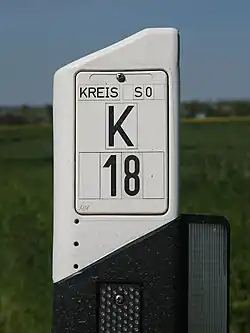 Kennzeichnung der Kreisstraße 22 (K 22) an einem Leitpfosten (hier im Kreis Pinneberg)