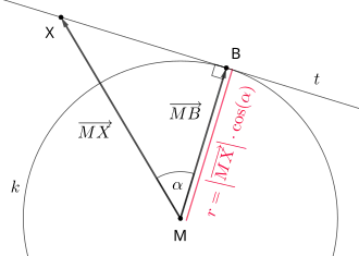 so lautet die Gleichung der Tangente mit dem Skalarprodukt:
