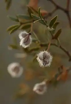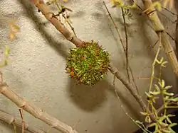 Die parasitäre Mücke Asphondylia aurinila führt beim Kreosotbusch zur Bildung von größeren Pflanzengallen.