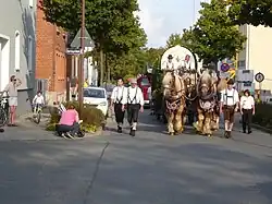 Seit 1966 wird die Kerwa auf dem Sportplatz des SC Kreuz abgehalten. Eingeleitet wird sie donnerstags mit einem Krenfleischessen, am Freitag führt der Umzug der Kerwaburschen und -„madla“ durch den Stadtteil. Neben einem Bierzelt und einem Biergarten gibt es Verkaufsstände und Fahrgeschäfte.[62] Die Kerwa gehört zu den stadtbekannten Veranstaltungen, sie erfreut sich über den Stadtteil hinaus großer Beliebtheit.