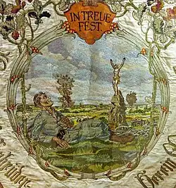 - ↑ Webseite zum Kreuz von Saarburg, mit Abbildung der Bodenkirchener Fahne