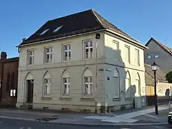 Im Eckgebäude an der Ecke Friedrich-Engels-Straße–Steinstraße befindet sich das Pfarramt. Ursprünglich wohnte hier der Branntweinbrenner Werlich, der das Haus um 1790 bauen ließ. Die gotisierenden Gestaltungselemente des Baus finden sich unter den nach dem Großen Stadtbrand gebauten Bürgerhäusern eher selten. Mit dem Kauf des Grundstücks im Jahr 1852 ging auch das Gebäude in den Besitz der Kirchengemeinde über.[4]