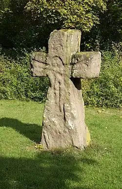 Das Kreuz ist 196 cm hoch, maximal 114 cm breit und 35 cm tief. Der Schaft verbreitert sich nach unten von 40 auf 85 cm. Die Vorderseite zeigt ein Basrelief mit einer Christusfigur. Der aus Burgsandstein angefertigte Kreuzstein steht auf einer derzeit überwachsenen Steinplatte mit den Maßen 105 × 170 cm.
