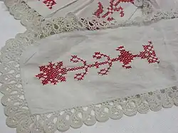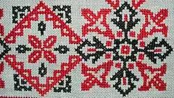 Der Kreuzstich hat eine lange und faszinierende Geschichte. Als Handwerk oder Freizeitbeschäftigung wurde er in verschiedenen Kulturen ausgeübt, meist um Gegenstände zu verzieren.[10] Vermutlich verbreitete sich die Kreuzstichstickerei von Byzanz aus über Europa und den Orient.[11] Im Spätmittelalter und der Renaissance waren Stickereien im religiösen Bereich verbreitet. Im weltlichen Bereich war der Kreuzstich als Zeitvertreib aus Kostengründen nur höhergestellten Damen vorbehalten. Die frühesten noch erhaltenen Beispiele werden auf etwa 1500 datiert. Im 16. Jahrhundert entstanden volkstümliche Stickereien, die meistens mit Kreuzstichen gestickt wurden.[12] Im 17. Jahrhundert wurde der Kreuzstich zur fast ausschließlichen Technik.[13] Im 19. Jahrhundert machte die Massenproduktion von Stoffen und Garnen das Sticken für breitere Bevölkerungsschichten zugänglich.