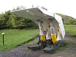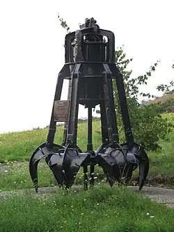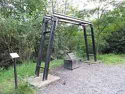 Der zweite Fall wird symbolisch durch eine Seilscheibe dargestellt. Das Rillenrad diente zur Umlenkung des Förderseils.