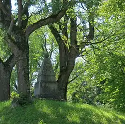 Das Kriegerdenkmal in der Gemeinde Wiedergeltingen im Landkreis Unterallgäu (Bayern) wurde im Gedenken an die Gefallenen des Deutsch-Französischen Krieges 1870/71 errichtet und steht unter Denkmalschutz.[1] Es erhebt sich auf einem künstlich aufgeschütteten Hügel auf dem Lehbüchl am südwestlichen Ortsrand. Das aus Sandstein gefertigte Kriegerdenkmal besteht aus zwei Stufen, worauf sich eine stumpfe Pyramide mit einer Kugel auf der Spitze anschließt. An der Nordseite befindet sich eine verwitterte, von einem Lorbeerkranz umgebene, Inschrift. Bis zum Jahr 1804 befand sich an dieser Stelle eine von Herzog Welf gestiftete, turmartige Lichtsäule.