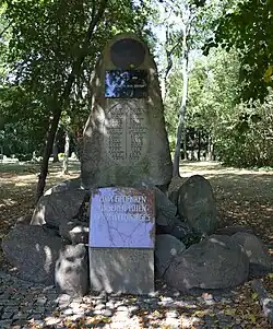 Am Fuß des Findlings wurde später eine Gedenktafel für die Gefallenen des Zweiten Weltkriegs hinzugefügt. Sie trägt folgende Inschrift: