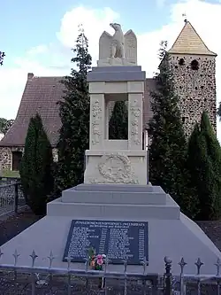 Das Kriegerdenkmal Wiederau ist mit einem schmiedeeisernen Zaun umfriedet und befindet sich unmittelbar neben der spätmittelalterlichen Feldsteinkirche von Wiederau im südbrandenburgischenLandkreis Elbe-Elster. Es soll an die in den beiden Weltkriegen gefallenen Einwohner aus Wiederau, Bahnsdorf und Neudeck erinnern. Am oberen, tempelartigen Teil des Denkmals befinden sich zwei Tafeln mit den Namen der Opfer des Ersten Weltkrieges aus Wiederau, Bahnsdorf und Neudeck. An der Vorderseite des kegelstumpfähnlichen Sockels ist eine Gedenktafel für die Opfer des Zweiten Weltkrieges aus Wiederau und Bahnsdorf angebracht. Auf dem Dach sitzt, flügelausbreitend, ein Adler.[1] Die gesamte Anlage wurde im Jahre 2005 instand gesetzt und das Denkmal vom Schmerkendorfer Malermeister Hans-Peter Schröter saniert.[2]