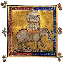 Hochmittelalterliche Darstellung eines antiken Kriegselefanten