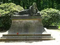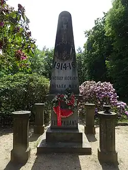 Wie die Franzosen bereits zuvor, planten auch die Russen ihren verstorbenen Gefangenen mit einem Denkmal zu gedenken. Ein Obelisk aus Granit, 4 Meter hoch und mit einer Grundfläche von 1,4 × 1,4 Meter war mit Inschriften in deutscher und russischer Sprache versehen. Vier kleinere Granitsäulen umgeben das Denkmal. Ein Georgskreuz, ein Medaillon mit Doppeladler und Zarenkrone schmücken das Denkmal. Der französische Gefangene Dehaye hat diesen Obelisk, wie zuvor bereits den französischen, geschaffen. Am 22. März 1916 erfolgte auf dem Kriegsgefangenenfriedhof die feierliche Weihe nach streng orthodoxem Ritual. In Anwesenheit der russischen Gefangenen, Angehörigen der Wachmannschaften und einer Abordnung der Kommandantur sowie des Kommandanten des Truppenübungsplatzes Generalmajor Stark und des Kommandanten des Kriegsgefangenenlagers Lange erfolgten die Feierlichkeiten.[2]