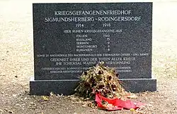 1917 wurde von italienischen Kriegsgefangenen ein Denkmal in Form einer Frauenstatue errichtet, das den verstorbenen Kriegsgefangenen gewidmet ist. Nach dem Krieg wurde dieses Denkmal mit einer kleinen Kapelle überbaut. Heute präsentiert sich der Lagerfriedhof als ebene Rasenfläche mit wenigen Steinkreuzen, der Kapelle und dem Friedhofskreuz.