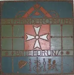 Ried im Innkreis: In der Altkatholischen Kirche von Ried findet sich am Chor ein Wehrschild in Form eines Eisernen Kreuzes mit schwarzen, weißen und gelben Nägeln.