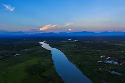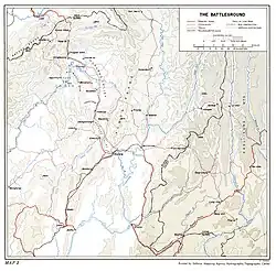 Nordburma wird von Indien, China und Tibet durch eine umgekehrte, U-förmige Kurve aus großen Bergen, dem Himalaya und ihren riesigen Ausläufern getrennt und durch die Kumaun-Kette[A 1] in zwei Bereiche geteilt. Westlich hat das Quellgebiet des Flusses Chindwin, der nach Norden fließt, das Hukawng Tal geformt. Unmittelbar südlich des Hukawng Tals befindet sich der Kamm des Jāmbu Bum, der die Wasserscheide des Chindwin von der des Irrawaddy, Burmas größtem Fluss, trennt. Südlich des Jāmbu Bum liegt das lange, schmale Tal des Mogaung-Flusses, eine natürliche Zufahrtsstraße zum großen Tal des Irrawaddy. Östlich der Kumaun-Kette bildet ein Nebenfluss des Irrawaddy einen langen, schlanken Finger von Myitkyina nach Norden zum Himalaya; an der Spitze dieses Tals befindet sich Fort Hertz, dessen Landebahn und Garnison 1942 der letzte alliierte Stützpunkt in Burma waren und das seitdem von den Alliierten gehalten wurde.[9]