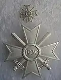 Eine verkleinerte Form des Kriegsverdienstkreuzes I. Klasse befindet sich in der Mitte des Deutschen Kreuzes in Silber, wie es ab 1957 getragen wurde.