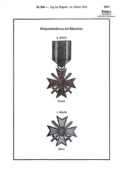 - Kriegsverdienstkreuz I. Klasse (ab 18. Oktober 1939)