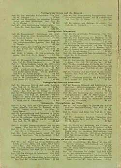 Die Reihenfolge der Vortragshefte ist nicht streng chronologisch. Manche Hefte, auch aus Vortragsreihen, erschienen später als andere Hefte der Reihe. Für die Hefte 48, 50–53, 111–114, 121–128, 137–150 findet sich heute kein Nachweis: wahrscheinlich sind sie nicht mehr in Druck gegangen.