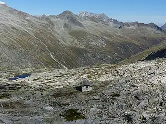 Blick vom Krimmler Tauern: Neugersdorfer Hütte und Dreiherrnspitze -
