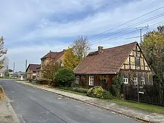 ![]() Ortsansicht, das Gebäude „Lindenstraße 16“ (vorne) ist das älteste erhaltene Gebäude im Ort