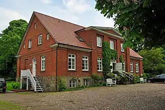 - Das Gutshaus mit Scheune ist ein eingeschossiges, verklinkertes Bauwerk mit Satteldach und zweigeschossigem Mittelrisalit. Ab 1919 war es das Wohnhaus von Malte zu Putbus, heute (2015) ist es ein Hotel. (Dorfstraße 4)