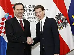 Diese guten politischen Beziehungen zwischen Österreich und Kroatien haben sich auch in jüngster Zeit nicht geändert. So führte der erste Staatsbesuch den damals frisch ernannten österreichischen Außenminister Sebastian Kurz zu seinem Amtskollegen Miro Kovač nach Zagreb, wo er unter anderem von der starken Verbundenheit der beiden Länder sprach.[19] Die guten Beziehungen der beiden Länder sollte allerdings nicht darüber hinwegtäuschen, dass Österreich im Jahr 2015 als eines von nur fünf EU-Ländern die Übergangsfrist für die Öffnung des Arbeitsmarktes für kroatische Bürger verlängert hat.[20]