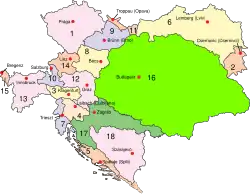 - ↑ Zdenke Šimončić-Bobetko: Der Zusammenbruch des österreichisch-ungarischen Wirtschaftsraums und seine Folgen für die wirtschaftliche Entwicklung der kroatischen Länder. In: Neven Budak (Hrsg.): Kroatien : Landeskunde - Geschichte - Kultur - Politik - Wirtschaft - Recht. Wien 1995, ISBN 3-205-98496-X, S. 201.