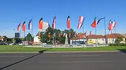 Flaggen Kroatiens und Portugals im Straßenbild Zagrebs, anlässlich des Staatsbesuchs des portugiesischen Präsidenten Marcelo Rebelo de Sousa am 18. Mai 2017