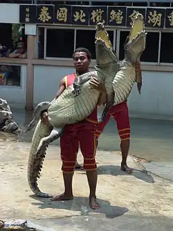 Krokodile in der Show einer thailändischen Krokodilfarm