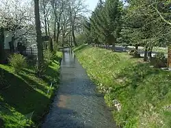 Durch den Ort fließt die Pulsnitz, die die Grenze zwischen den beiden Orten und die Grenze zum Schraden bildet.