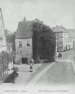 In Crossen gab es eine jüdische Bevölkerungsgruppe. 1851 wurde eine Synagoge errichtet,[15] die am 10. November 1938 niedergebrannt und anschließend abgerissen wurde.