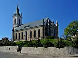 - Die Stadtpfarrkirche St. Hedwig aus der Zeit 1450 wurde 1705–1707 barock umgebaut. Sie diente bis 1945 als evangelisches Gotteshaus.