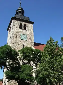 Die Dorfkirche St. Severus, die nur wenig älter als das Schloss ist, geht auf einen spätgotischen Bruchsteinbau aus dem 15./16. Jahrhundert zurück. Der heutige quadratische Westturm stammt aus dem Jahr 1704 und ersetzte den 1693 abgebrannten Glockenturm. 1713 wurde auch das Gewölbe der Kirche mit Balken und Dielen erneuert. In der Zeit nach 1732 erhielt die Kirche einen neuen Altar und eine neue Kanzel im barocken Stil. 1751 wurde schließlich „alles“ mitsamt Himmel „bunt bemalt“ und 1766 auch noch eine neue Orgel eingebaut.