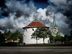 Im Jahr 1974 beschloss man die Verschiebung des rund 4.500 Tonnen schweren Pulverturmes an seinen jetzigen Standort in einem Stück. Der Transport über die Straße war 270 Meter lang und die Verschiebung fand in einem Zeitraum von 13 Monaten statt. Ursprünglich stand der Turm auf einer Landzunge, so dass feindliche Schiffskanonen die Stadt nicht erreichen konnten, bevor die Schiffe selbst in Reichweite der Kanonen des Turmes waren. Am 5. August 1976 wurde der Pulverturm für die Öffentlichkeit in Anwesenheit der königlichen Familie eröffnet.
