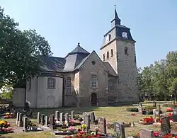 Im Zuge des Braunkohlenabbaus im Geiseltal wurden Lützkendorf und ein Teil von Krumpa im Jahr 1961 umgesiedelt und 1963 abgebaggert (devastiert), Kämmeritz folgte ab 1966.[7] Zur Kirche gehörten als Filialen die ebenfalls abgebaggerten Orte Lützkendorf und Petzkendorf.