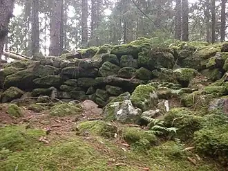 Von der ehemaligen Burganlage der Wallburg sind noch Reste der Wälle und Gräben erhalten.