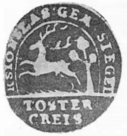Das Wappen bzw. Siegel zeigt Wild vor einem Baum.