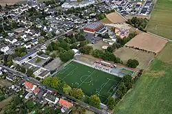 ![]() Kuchenheim – Ortsmitte, Luftbild aus SW-Richtung