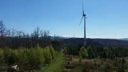 Im Februar 2017 begannen die Bauarbeiten für die Errichtung von 4 Windkraftanlagen (WEA) des Typ Enercon E115 vom Hersteller Enercon, mit einer Maximalhöhe von 207 m.[5] Zwei WEA (4 u. 6) wurden in unmittelbarer Nähe des Gipfels errichtet. WEA 5 direkt unterhalb des Gipfelplateaus. Das vierte (WEA 1) etwa 900 m westlich.[6] Von den ursprünglich geplanten sechs WEA wurde eine Anlage (WEA 3) nicht genehmigt. Diese befindet sich im Schutzradius des Drehfunkfeuers Taunus bei Limbach.[7] Eine weitere Anlage (WEA 2) befindet sich noch im Genehmigungsprozess.[8] Als Projektierer und Generalunternehmer fungierte die DunoAir aus Rees.[9]